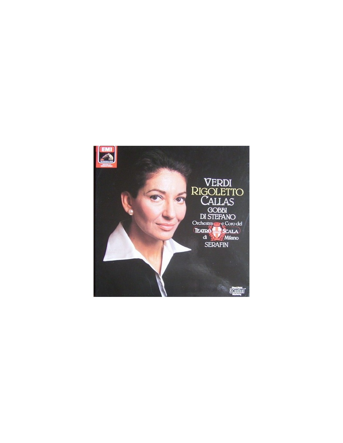 2 LP Box Set made in West Germany 1986 (His Master's Voice/EMI Electrola EX-2909283), mit viersprachiger Textbeilage und vollstaendigem Libretto (32 Seiten). Tullio Serafin & Coro e Orchestra del Teatro alla Scala di Milano singen und spielen Giuseppe Verdis "Rigoletto". Gesamtaufnahme in italienischer Sprache. Aufgenommen im Teatro alla Scala, Milano, September 1955. Mit Maria Callas, Giuseppe di Stefano, Tito Gobbi, Nicola Zaccaria u.a. Mono/Digitally remastered (DMM/Direct Metal Mastering).