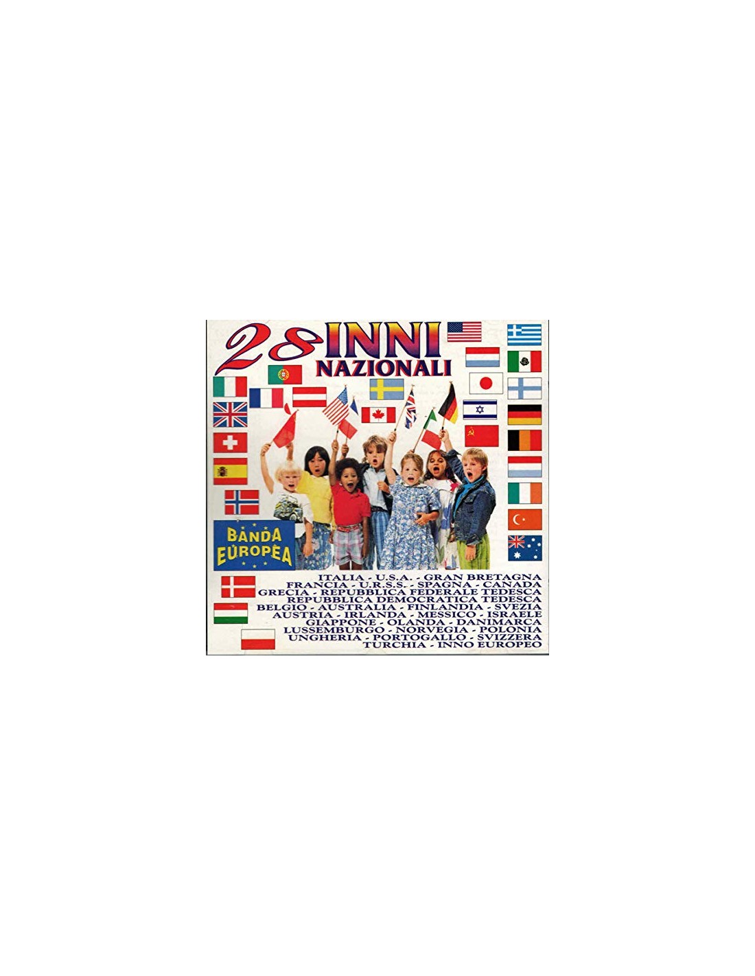 Elenco tracce 1Inno Di Mameli - Italia1:30 2The Star-Spangled Banner - U.S.A.2:34 3God Save The Queen - Gran Bretagna1:33 4La Marseillaise - Francia2:23 5U.R.S.S. - U.R.S.S.1:00 6Marcha Real - Spagna1:24 7Rep. Fed. Tedesca - Rep. Fed. Tedesca2:20 8O Canada - Canada1:30 9Grecia - Grecia2:00 10Rep. Dem. Tedesca - Rep. Dem. Tedesca1:47 11La Brabançonne - Belgio1:50 12Advance Australia Fair - Australia1:47 13Maamme - Finlandia1:54 14Svezia - Svezia1:21 15Austria - Austria2:03 16Amthrán Na Bh Fiann - Irlanda2:00 17Messico - Messico1:25 18Hatiqvah - Israele1:25 19Giappone - Giappone1:38 20Olanda - Olanda1:35 21Danimarca - Danimarca0:55 22Ons Hémécht - Lussemburgo1:14 23Norvegia - Norvegia1:32 24Mazurek Debrowskiego - Polonia1:21 25Ungheria - Ungheria1:48 26A Portuguêsa - Portogallo1:09 27Svizzera - Svizzera2:40 28Istikläl Marst - Turchia1:59 29Inno Alla Gioia - Inno Europeo2:16